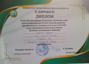 20 қараша 2025 жылы Мұнайлы ауданы бойынша білім бөлімінің «Өнер…